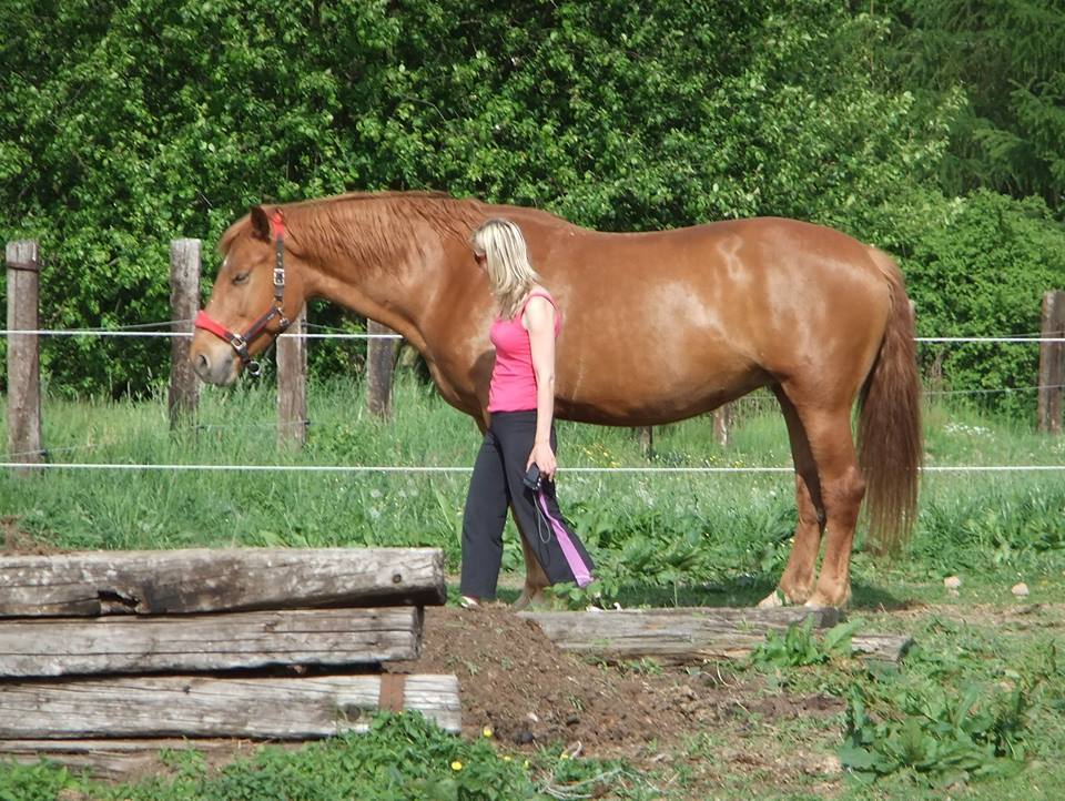 Debie a její majitelka Sylva. Pěkně jim to spolu šlape. Debie je užasně tolerantní klisna.